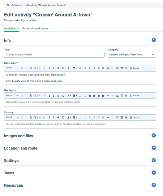 We also decided to adopt a more condensed layout in these pages, allowing you to quickly get to the sections you need without having to scroll down an endless page or click back and forth to get to the information you're looking for. Simply click on the section you need and it'll expand to display the relevant details, options and settings. This also goes for the Schedules and Prices section.