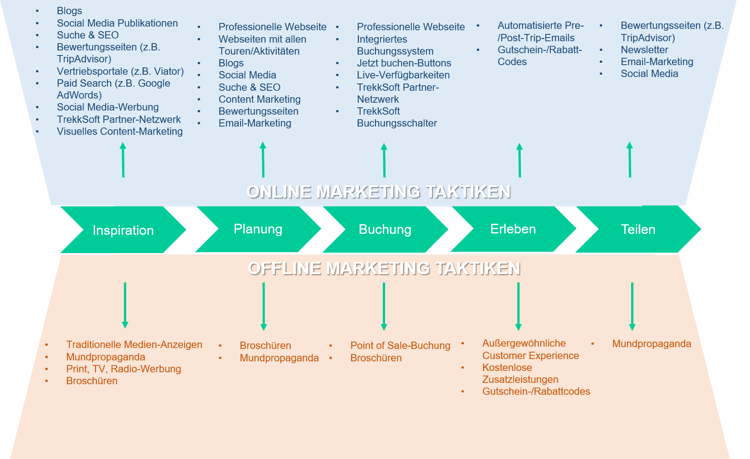 Vielleicht wollen Sie, dass mehr Menschen auf Ihre Touren aufmerksam werden oder sich die Besucherrate auf Ihrer Webseite verdoppelt. Hier erfahren Sie, wie Sie die Customer Journey als ein Ganzes betrachten und wie Sie Ihre Marketing-Aktivitäten optimal ausrichten können, um maximalem Erfolg zu erlangen.