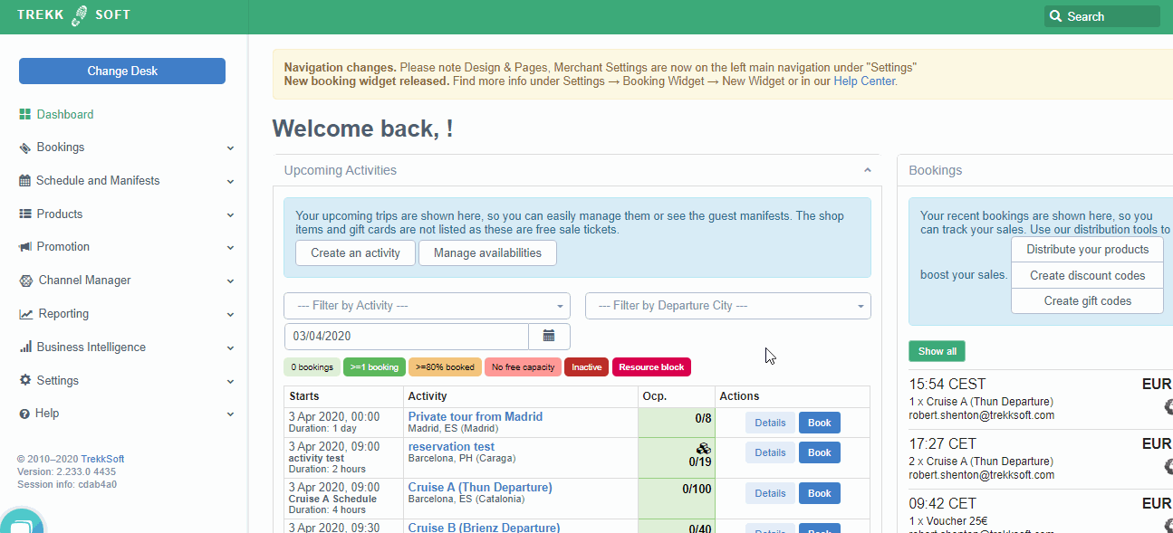 With an existing schedule already in place, TrekkSoft users can easily make updates.