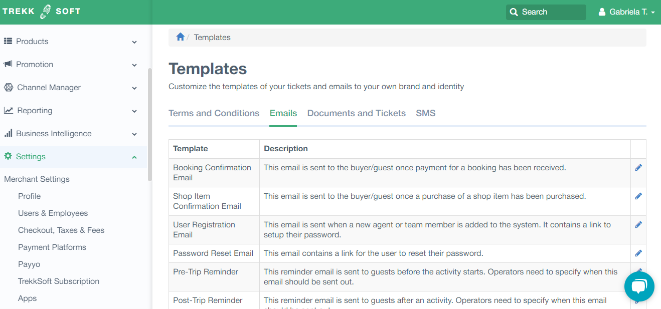 This is really simple to set up in TrekkSoft. Go to Settings > Product & Booking Settings > Emails & Tickets and click on the Emails tab to find and edit the booking confirmation email template.