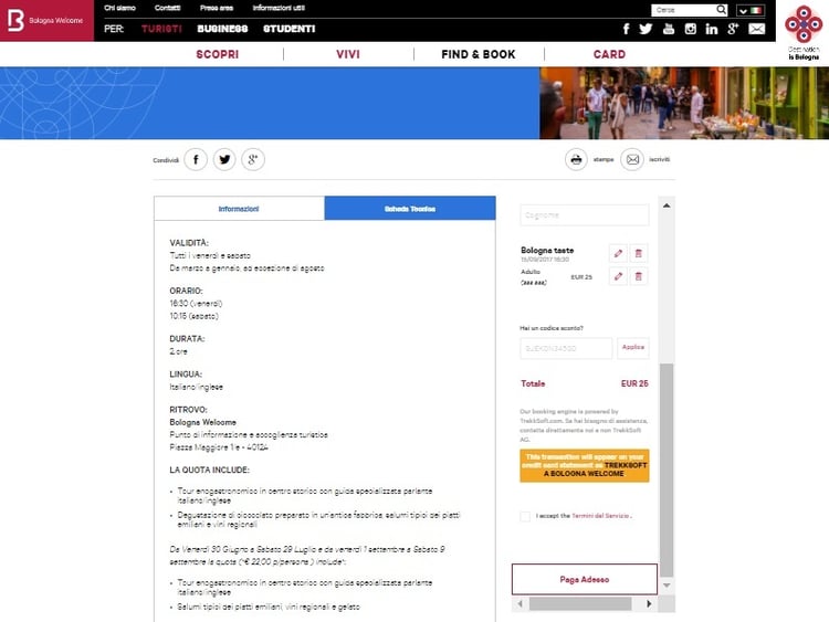 Sito web Bologna Welcome integrato con il software di prenotazione di TrekkSoft
